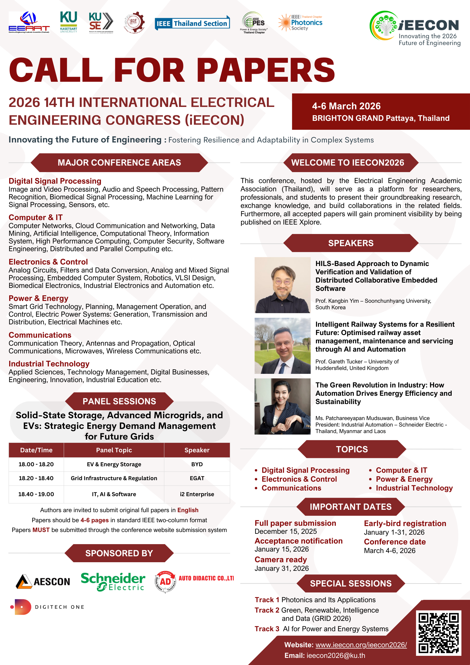 This conference is held on 4-6 March 2026 in Pattaya, Thailand, organized by The Electrical Engineering Academic Association (Thailand) and The Department of Electrical and Computer Engineering, Faculty of Science and Engineering Kasetsart University, Chalermphrakiat Sakon Nakhon Province Campus.
